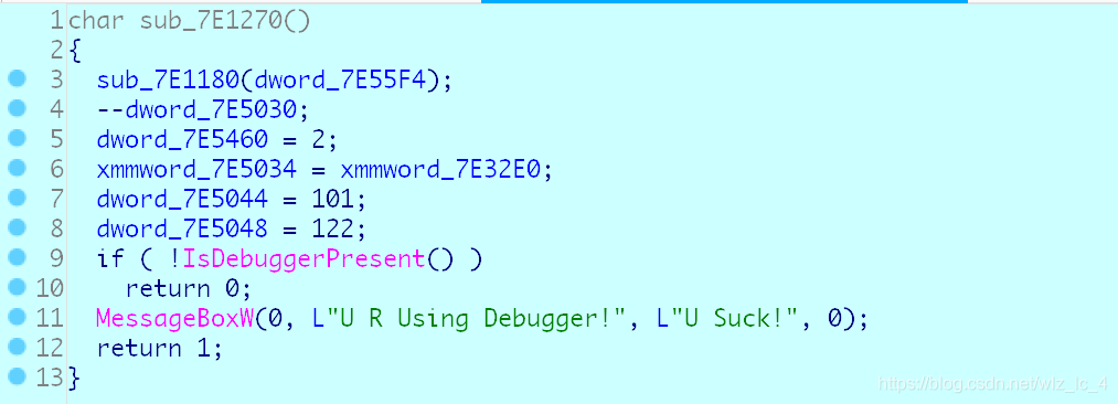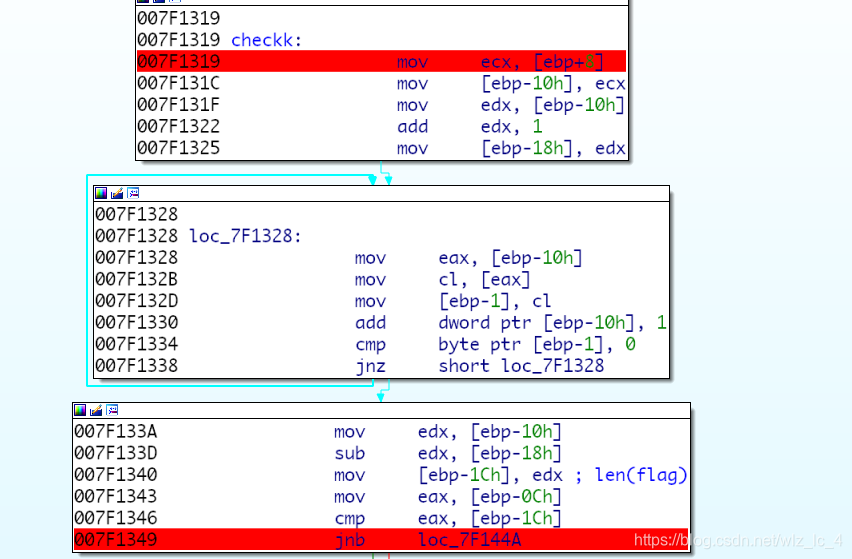 可以看到一个flag长度,然后后面的check 函数参数中是明文flag
